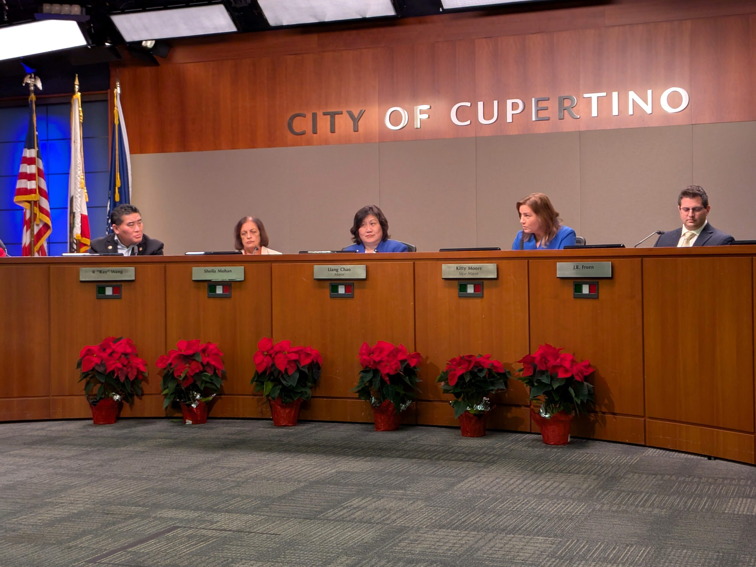The five-member council voted in Moore as mayor Dec. 11 and Mayor Liang Chao as vice mayor, though Councilmember R “Ray” Wang was seen as the leading vice mayor candidate. Councilmembers vote every year to fill the positions from within their ranks. Resident response via email and in person at the meeting was roughly split, with 25 in favor of Wang becoming vice mayor and 27 against.