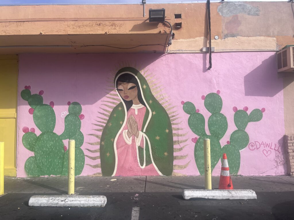 After getting permission from Tropicana Liquors owner Gursharan Singh to paint his walls, Espino talked to other nearby struggling businesses who agreed to support the mural project by donating wall space.