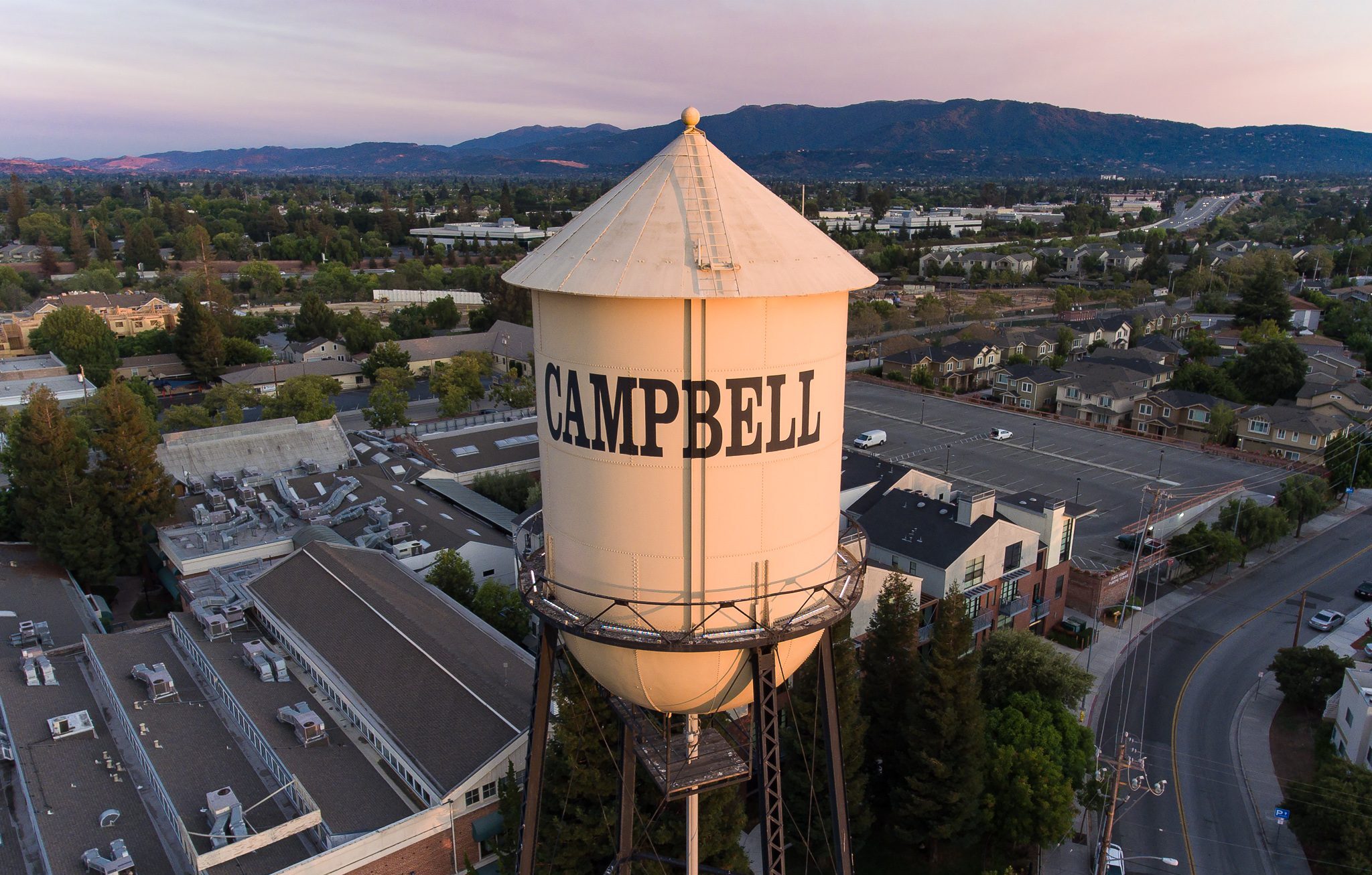 The iconic Campbell water tower can be lit up in different colors at night. In 2016, Campbell replaced the tower’s fluorescent lights with LED fixtures capable of 150 color combinations. The colors are used to mark special occasions, such as holidays or special awareness months. In October, former Campbell Mayor Sergio Lopez requested the landmark be colored pink in honor of Breast Cancer Awareness Month.