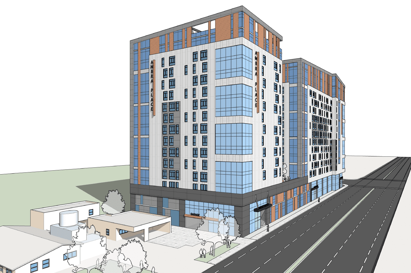 Located on a roughly 1.3-acre site at 901-987 N. Rengstorff Ave., the 15-story project covers nearly the entirety of the property, replacing an existing duplex and three storage structures. Under local regulations, the city would typically allow for 19 new units to be built on the property, instead of the 455 units, including 91 affordable units, that Ambra is proposing. The building is also four times taller than the 45-foot maximum building height allowed in the neighborhood, rising to roughly 180 feet in height, according to the council report.
