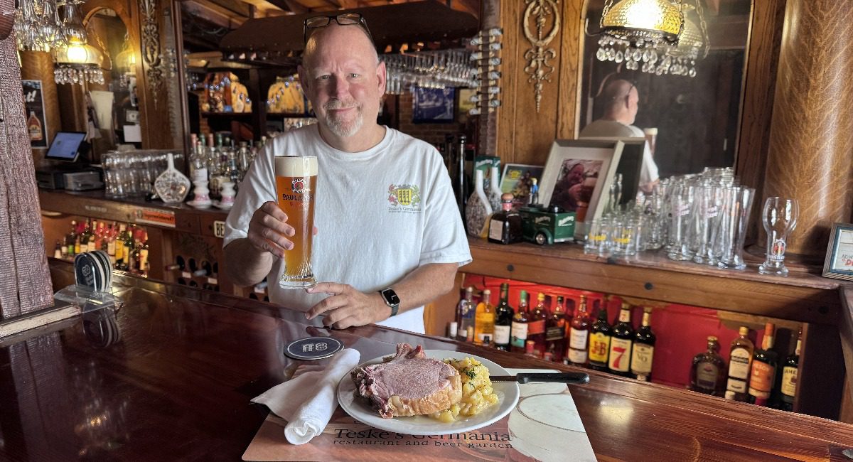 Stepping into Teske’s Germania Restaurant, with its long wooden bar that stretches along half the entryway, there’s a strong sense of gemütlichkeit, an untranslatable German word meaning “warmth and good cheer.” Co-owner Cynthia Baumann likens it to a Bavarian lodge, where the food is authentic, the beer flows freely and everyone is welcome.