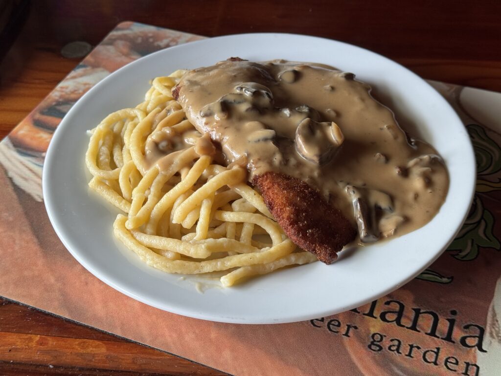 The results can be seen in even simpler dishes, like the Jägerschnitzel mit unserer speziellen Pilzsoße, a thin pork cutlet, breaded and fried, and served with a rich and creamy mushroom gravy. It is served on a mound of tender housemade spätzle, which are prepared fresh every morning.