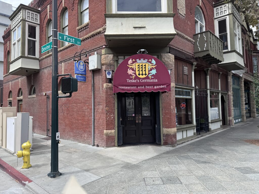 Teske’s was founded in 1980 by Ernst and Marianne Teske. According to Cynthia’s brother, co-owner Greg Baumann, the couple had operated the kitchen at Germania Hall, located on Second Street, which was owned by the German club of Santa Clara County.